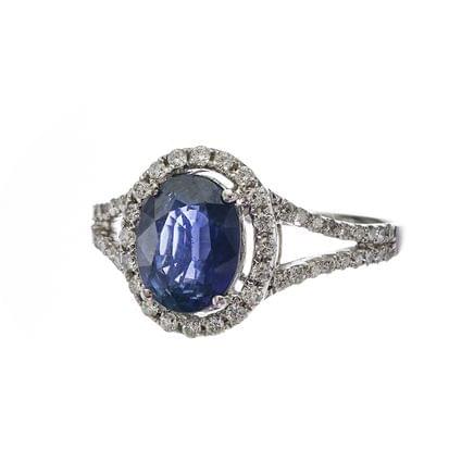 281. Bague sertie d'un saphir ovale (env. 1.5 ct) entouré et épaulé de diamants