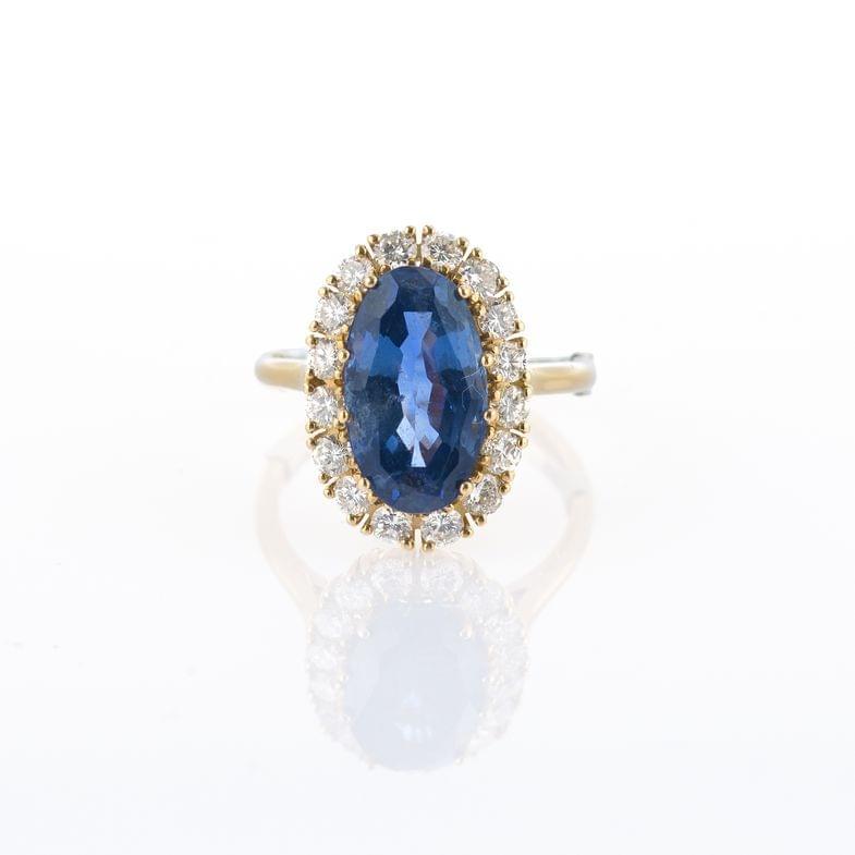 37. Bague sertie d'un saphir taille ovale entouré de diamants taille brillant