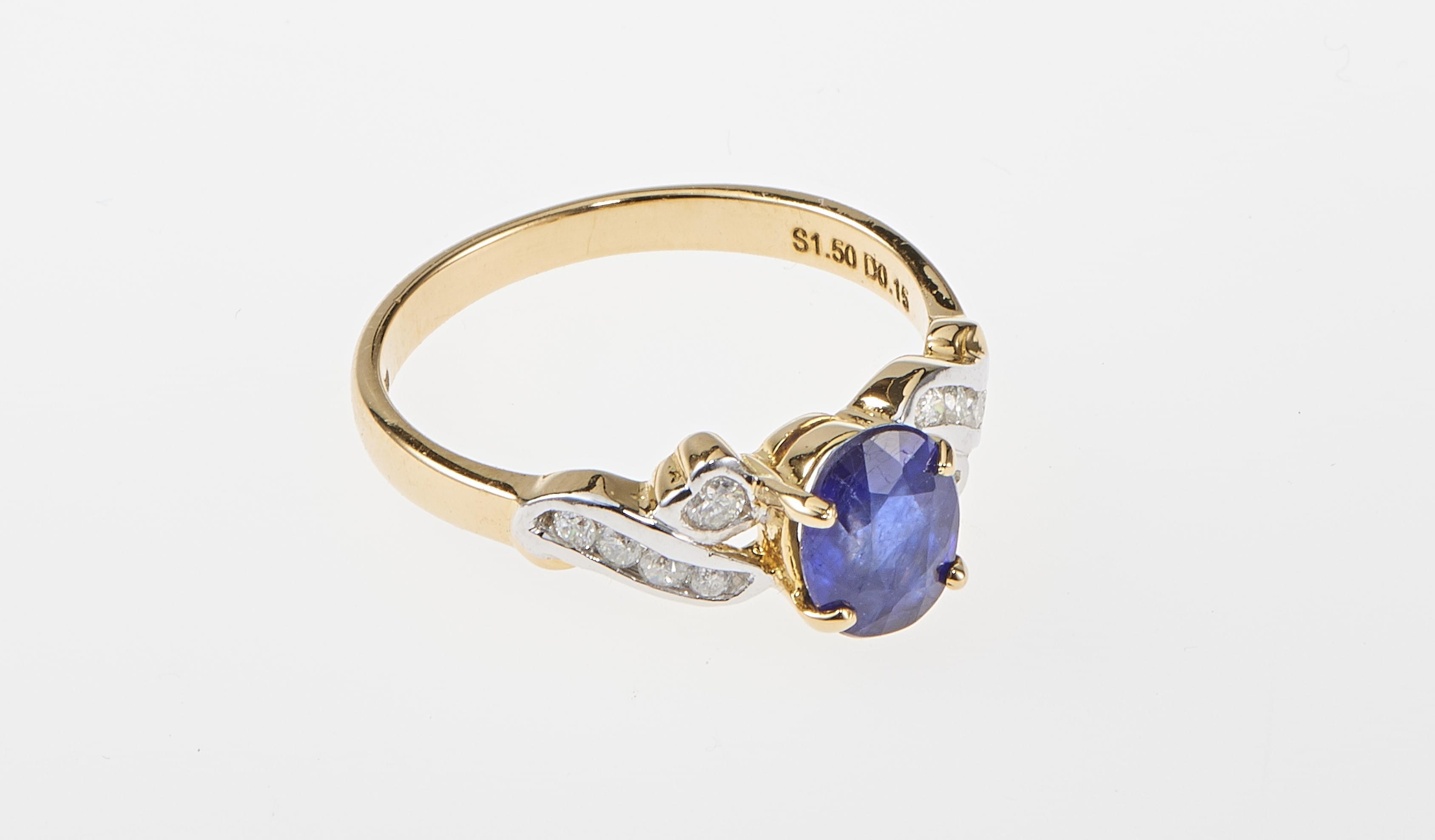 3280. Bague sertie d'un saphir taille ovale (env. 1 ct) épaulé de diamants