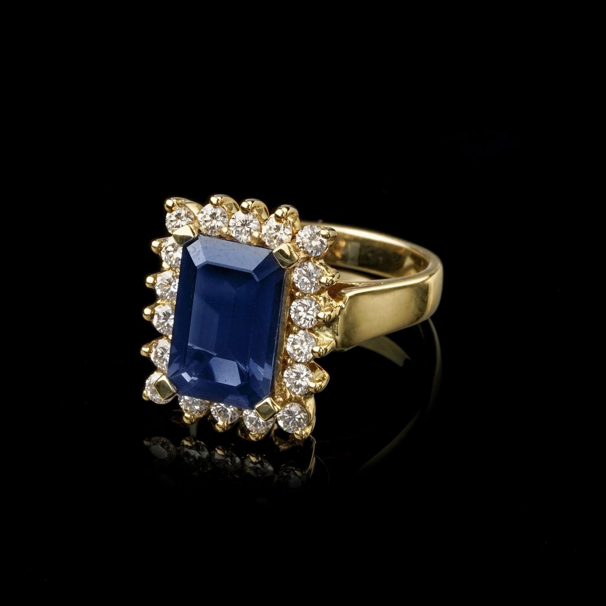 721. Bague sertie d'un saphir taille rectangle (env. 3,5 ct) entouré de diamants (env. 0,7 ct)