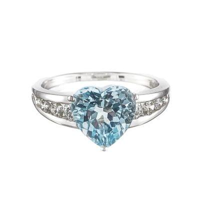 306. Bague sertie d'une aigue-marine taille cœur épaulée de diamants