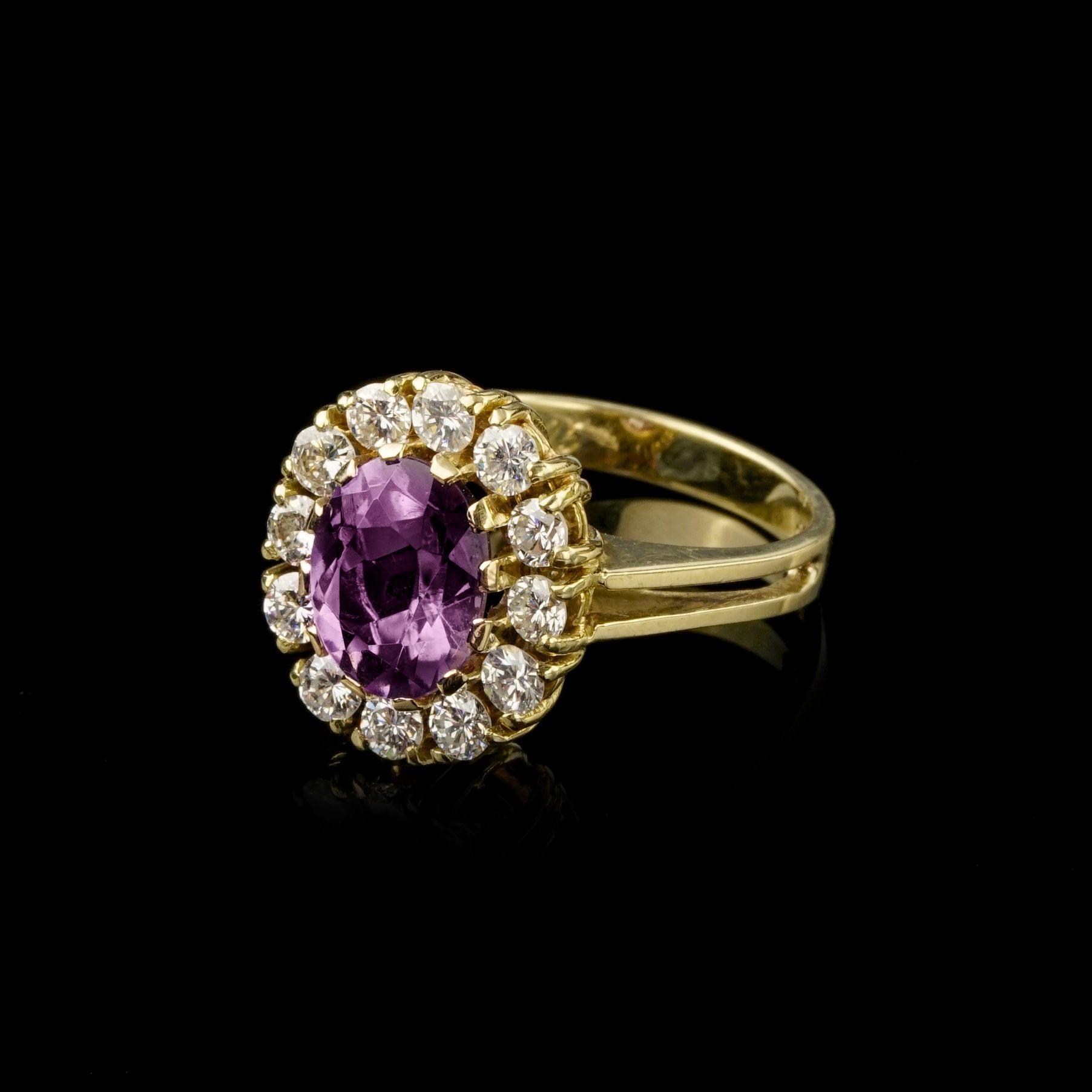 710. Bague sertie d'une améthyste (env. 2 ct) entourée de diamants (env. 0,7 ct)