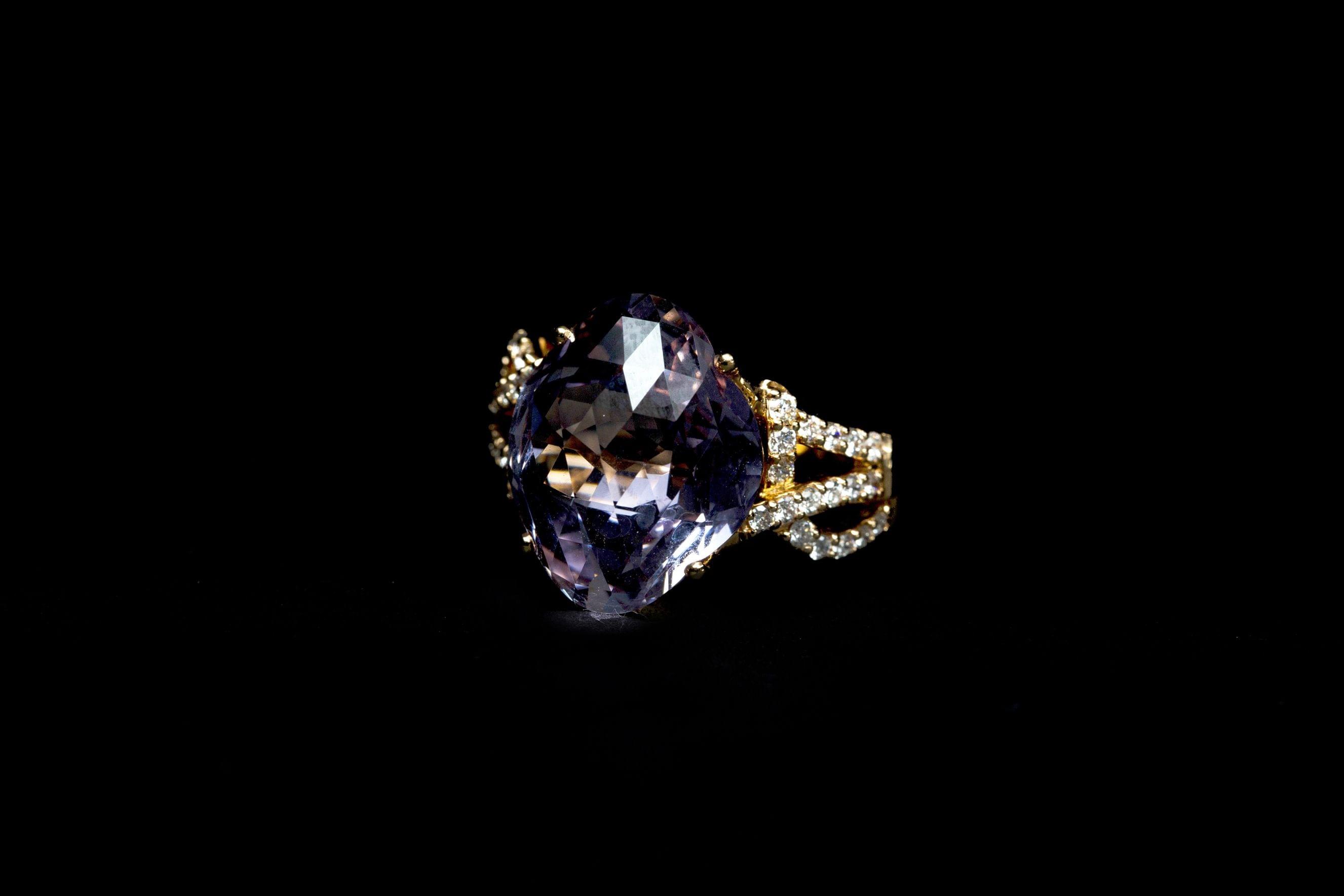 812. Bague sertie d'une améthyste taille fantaisie (env. 8 ct) épaulée de diamants