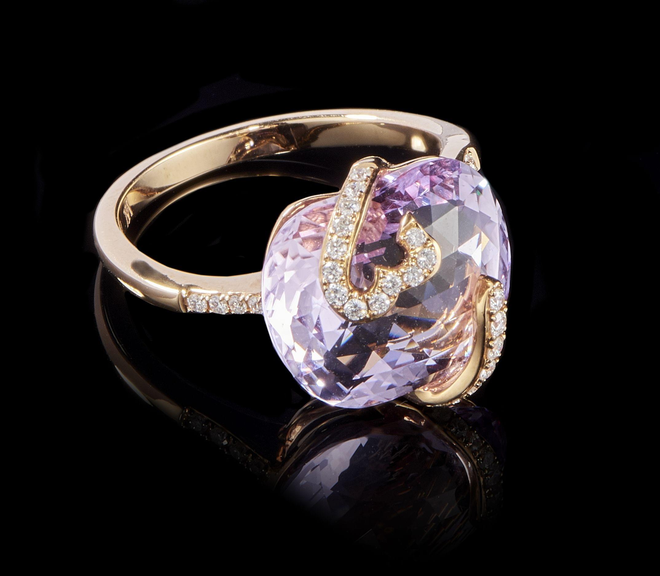 84. Bague sertie d'une améthyste taille fantaisie facettée (env. 7,5 ct) rehaussée de diamants