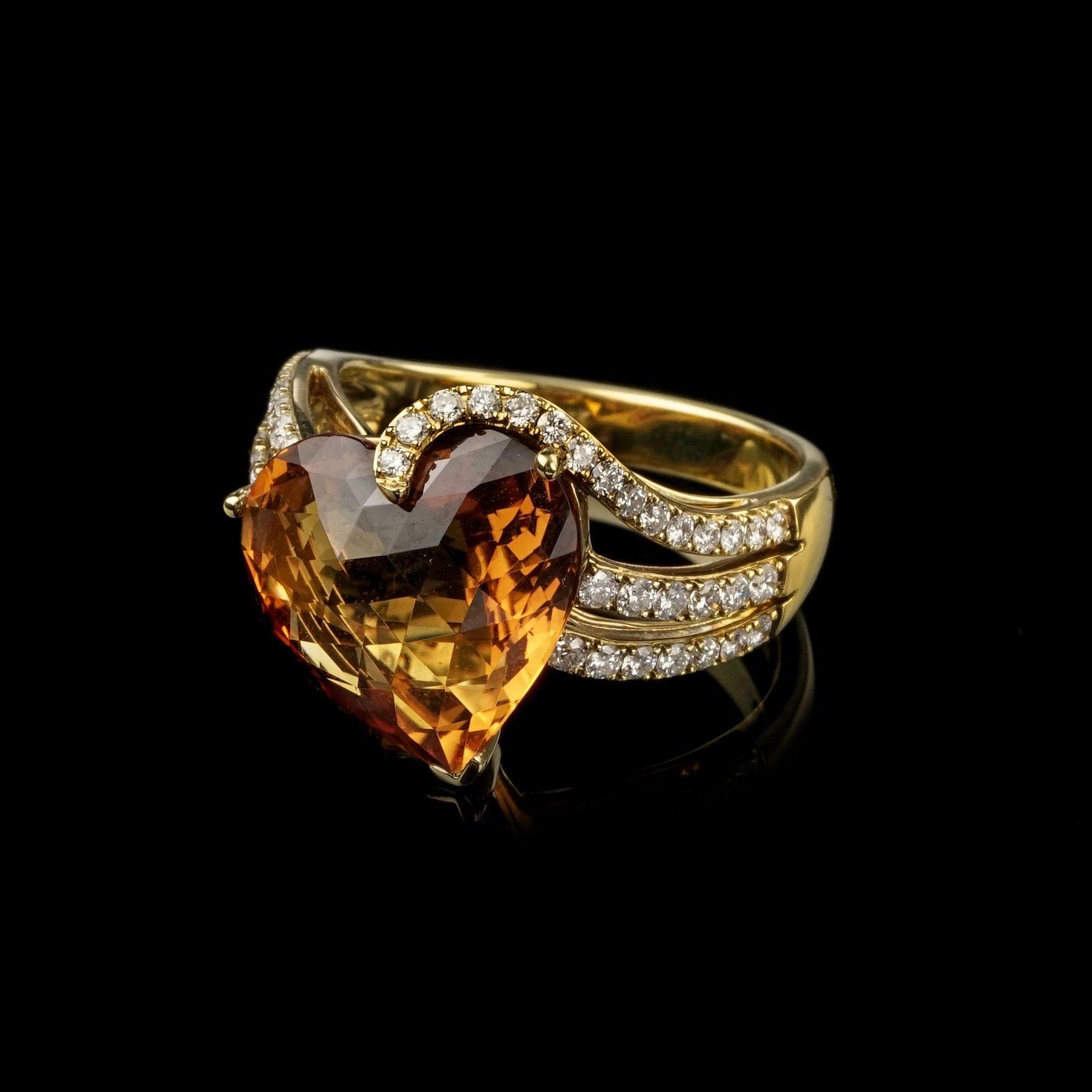 711. Bague sertie d'une citrine taille cœur (env. 7,5 ct) épaulée de lignes de diamants (env. 0,6 ct)
