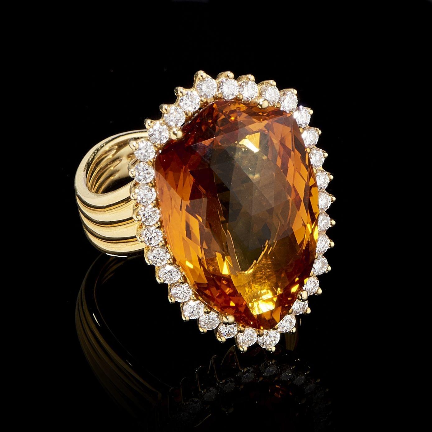 89. Bague sertie d'une citrine taille fantaisie facettée entourée de diamants