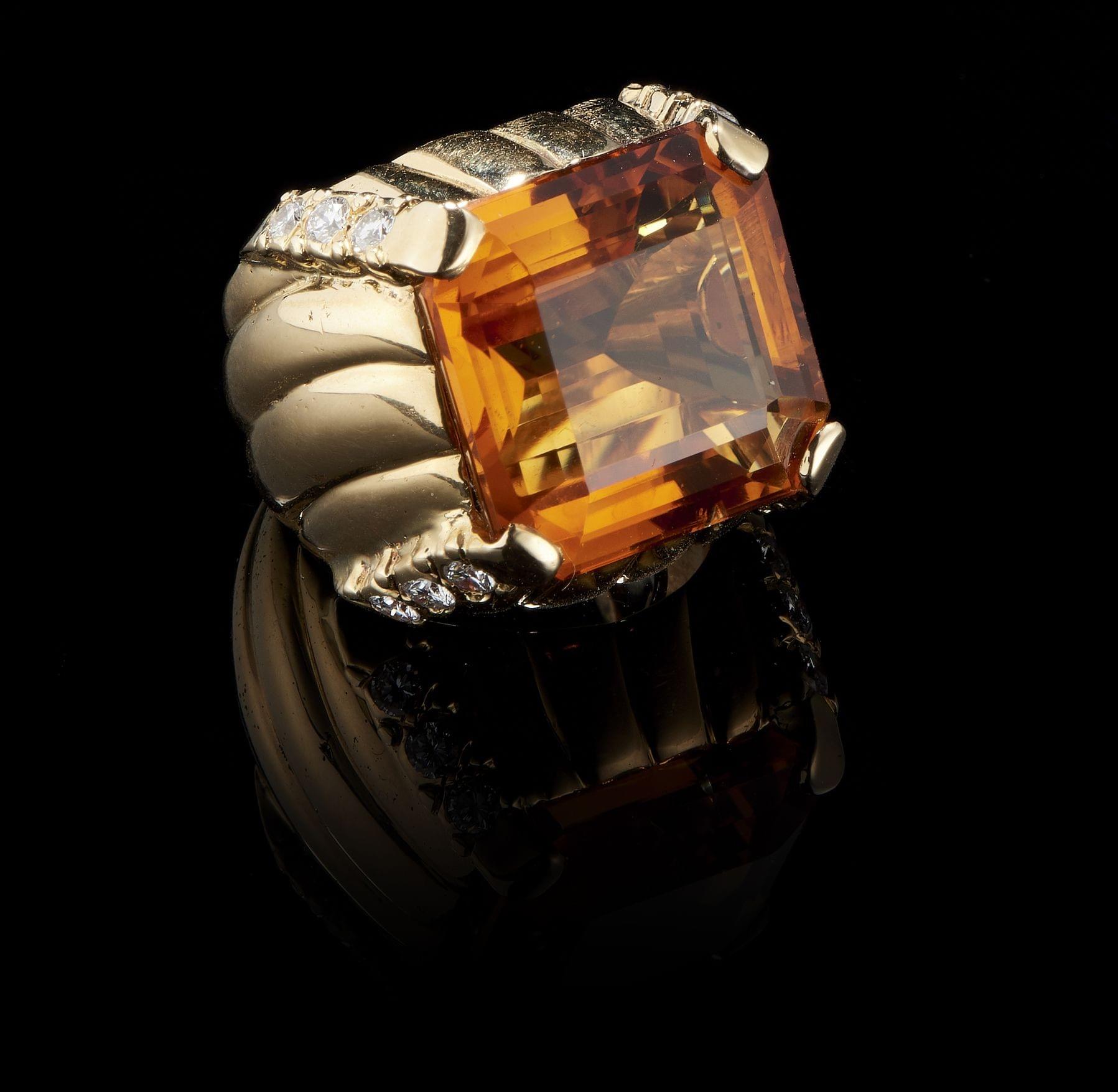 126. Bague sertie d'une citrine taille rectangle (env. 16 ct) épaulée de diamants