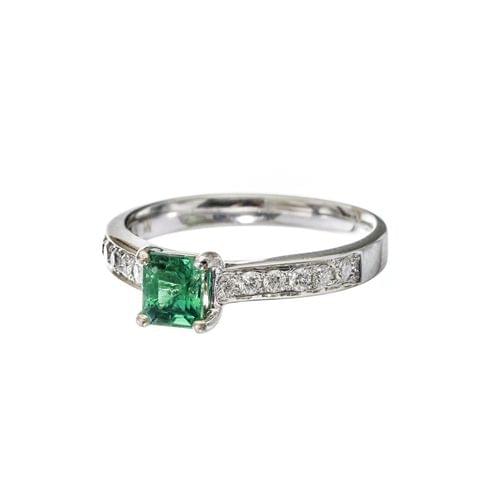 289. Bague sertie d'une émeraude carrée (env. 0.6 ct) sur une monture semi-pavée de diamants