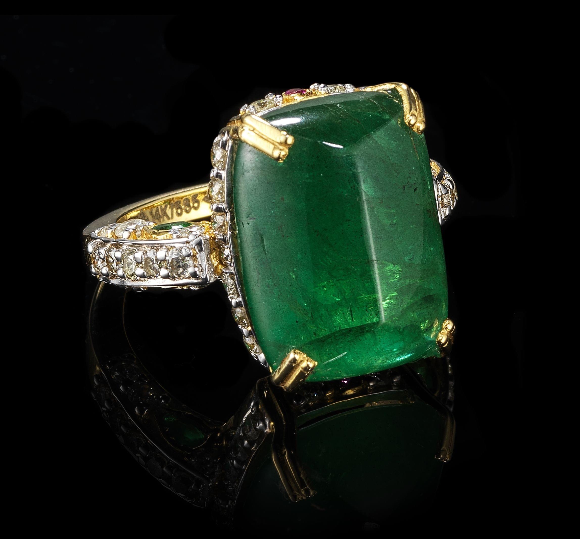 276. *Bague sertie d'une émeraude en pain de sucre (14.25 ct)