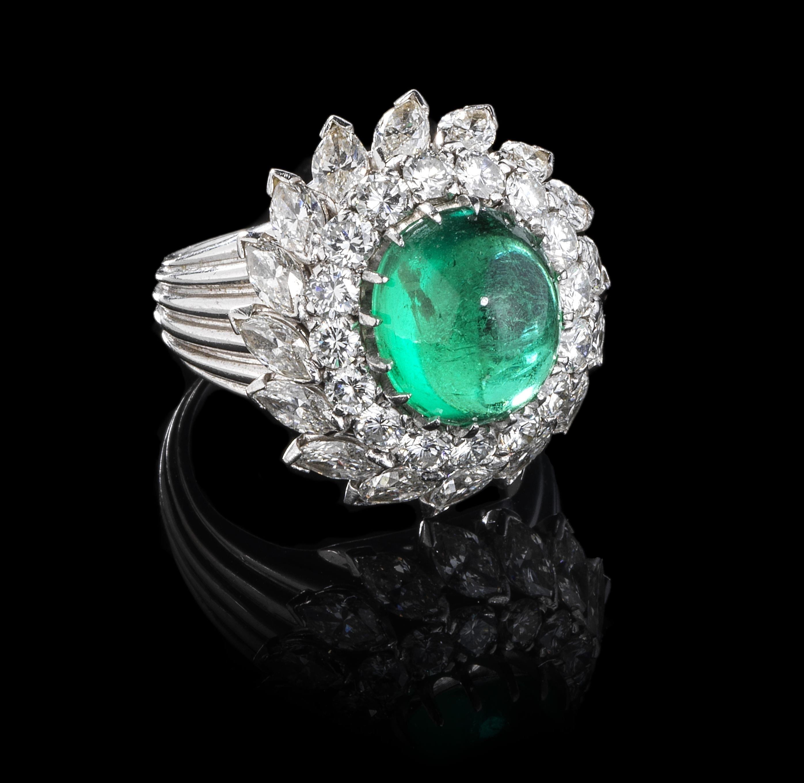88. Bague sertie d'une émeraude en pain de sucre (env. 10,3x9,3x6 mm)
