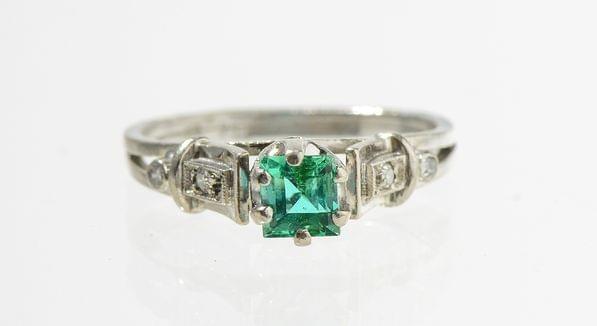 3121. Bague sertie d'une émeraude épaulée de diamants