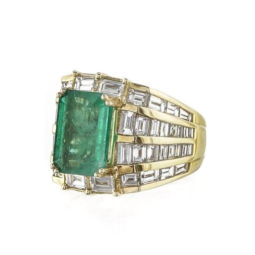266. Bague sertie d'une émeraude taille émeraude (env. 4.7 ct) et semi pavée de diamants baguette (env. 4.3 ct)