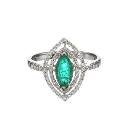 292. Bague sertie d'une émeraude taille marquise dans un double entourage de diamants