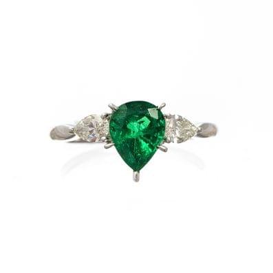 143. Bague sertie d'une émeraude taille poire (env. 1.2 ct) épaulée de deux diamants taille poire