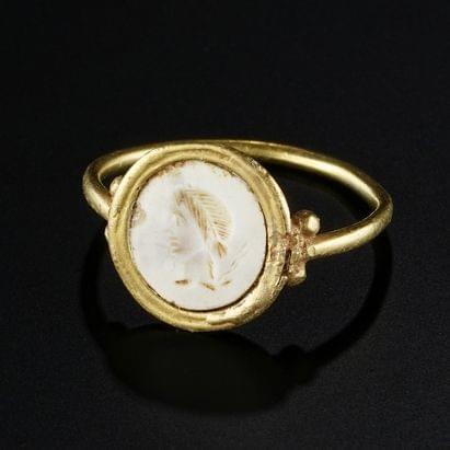 Tenant une grappe dans la main droite, calcaire sculpté, traces...