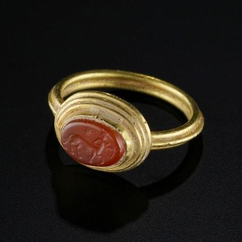 846. Bague sertie d'une intaille sur cornaline, époque romaine, Ier-IIIe s ap. JC