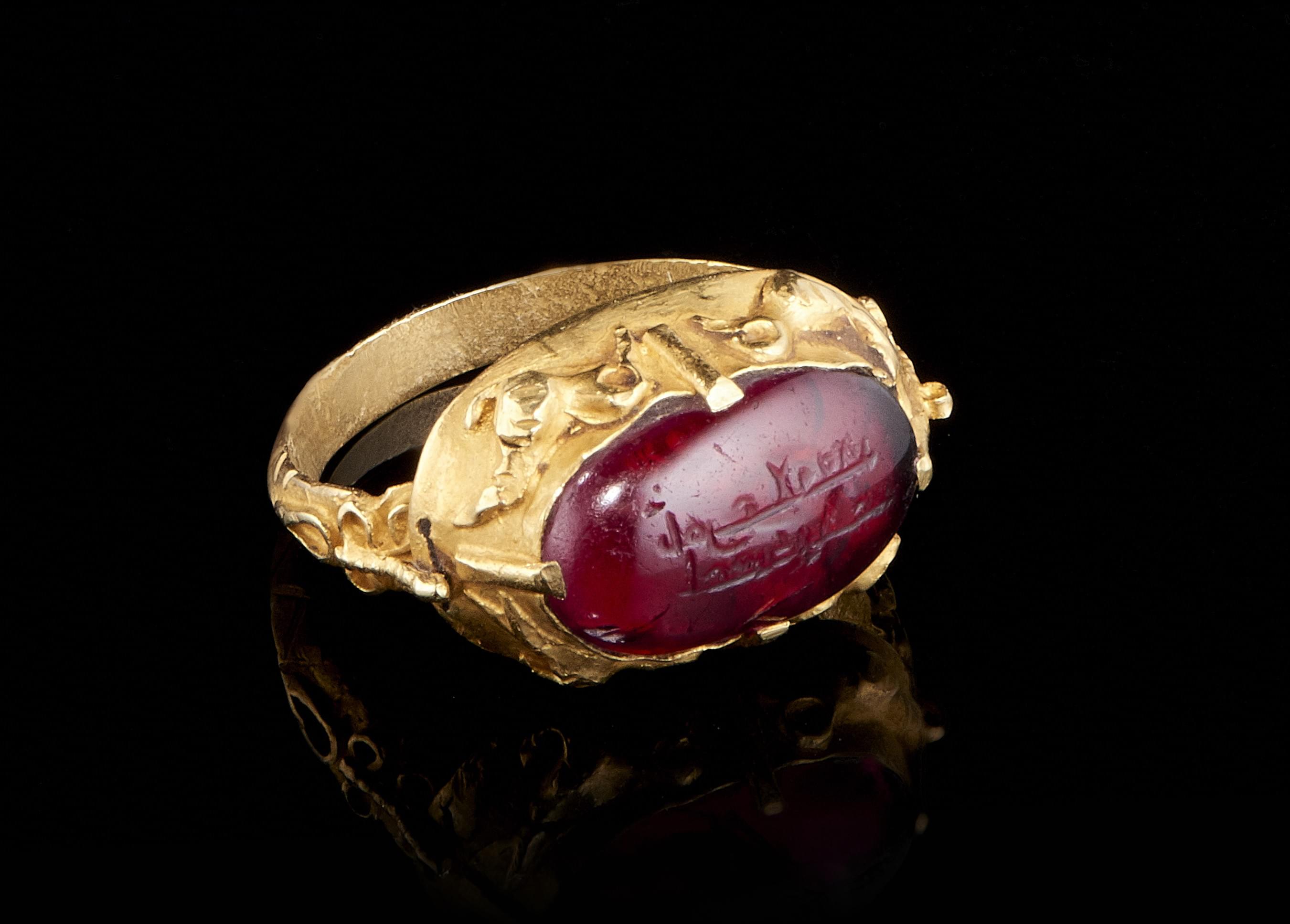 129. Bague sertie d'une intaille sur grenat, Iran, époque Seldjoukide ou postérieur