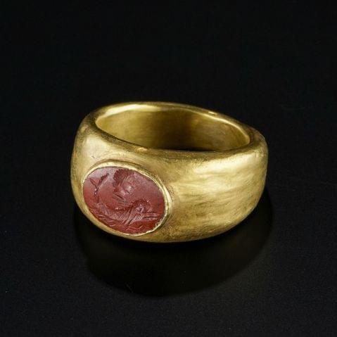 848. Bague sertie d'une intaille sur jaspe rouge, époque romaine, Ier-IIIe s ap. JC