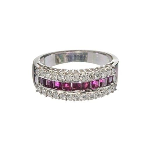 283. Bague sertie d'une ligne de rubis taille princesse entourée de deux lignes de diamants