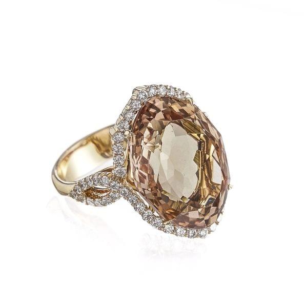268. Bague sertie d'une morganite ovale entourée et épaulée de diamants