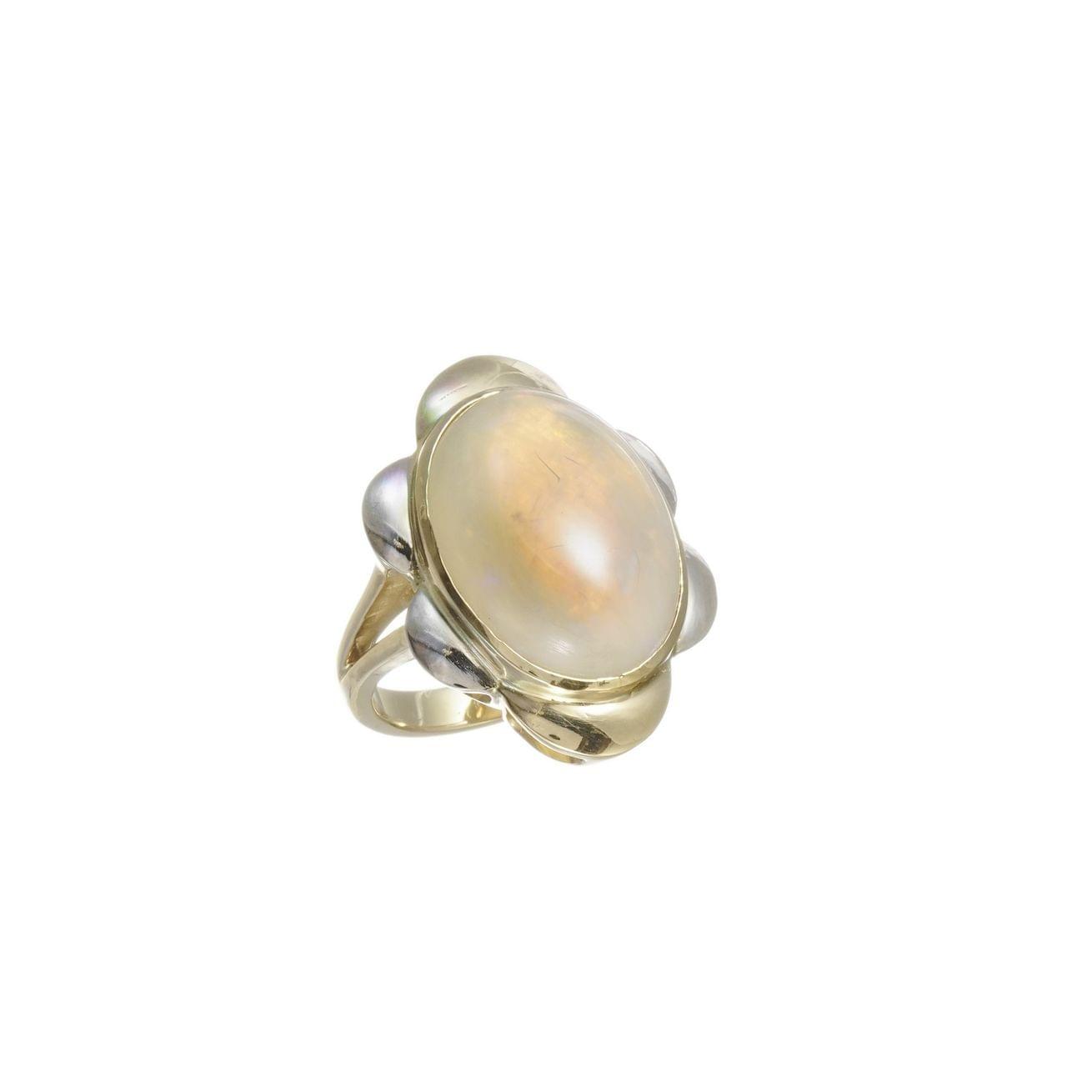 3312. Bague sertie d'une opale à fond blanc ovale