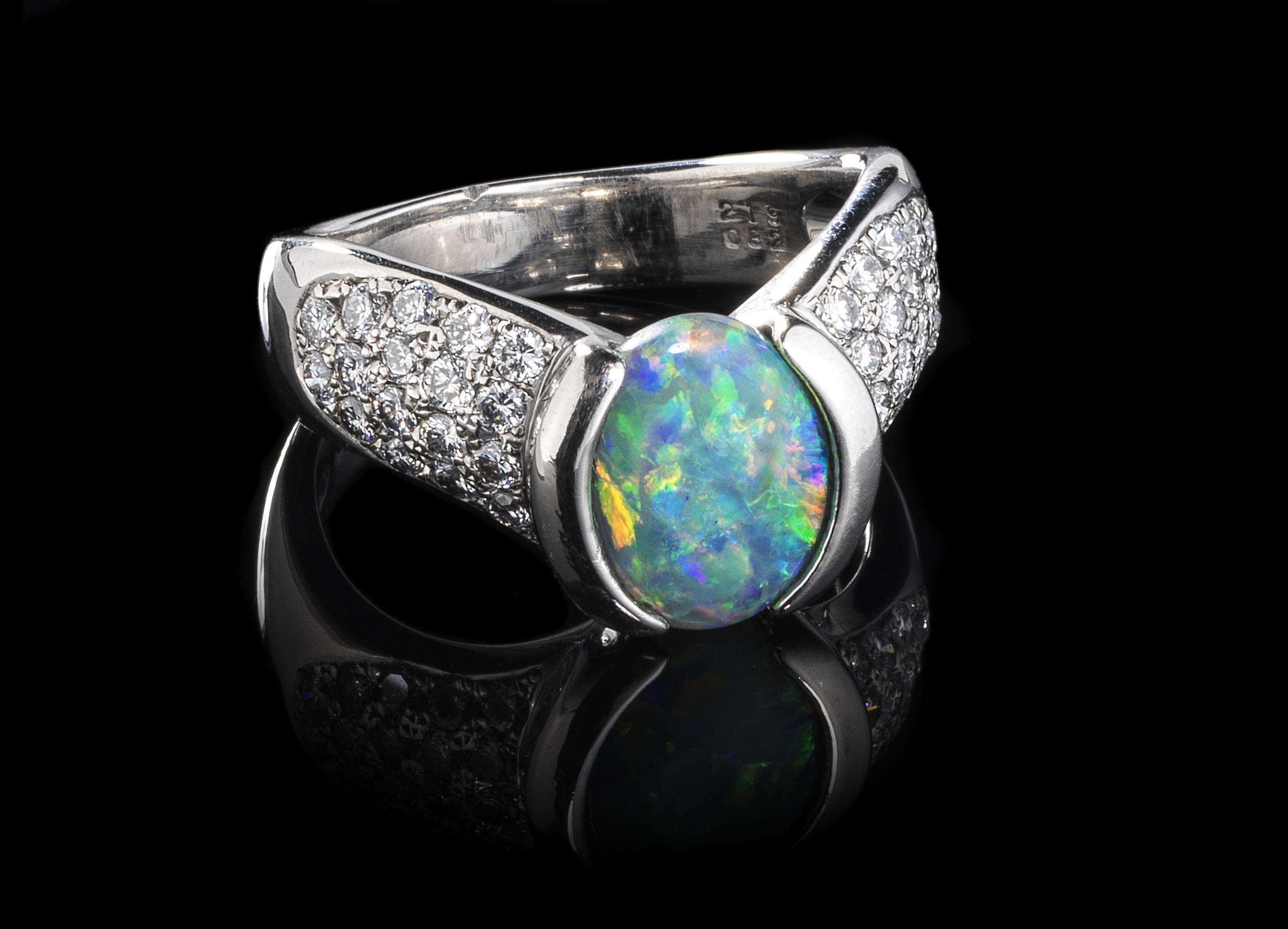 63. Bague sertie d'une opale australienne taille cabochon ovale (env. 1,8 ct)