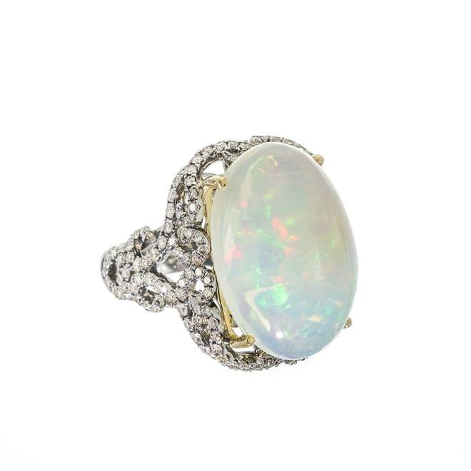 274. Bague sertie d'une opale (env. 15 ct) sur une monture ajourée sertie de diamants cognac