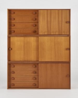 Tiroirs et portes coulissantes, teck, dim. chaque 52x122x39 cm