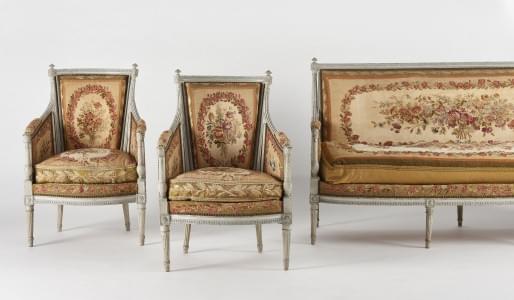 634. Salon d'époque Louis XVI comprenant un canapé et une paire de be...
