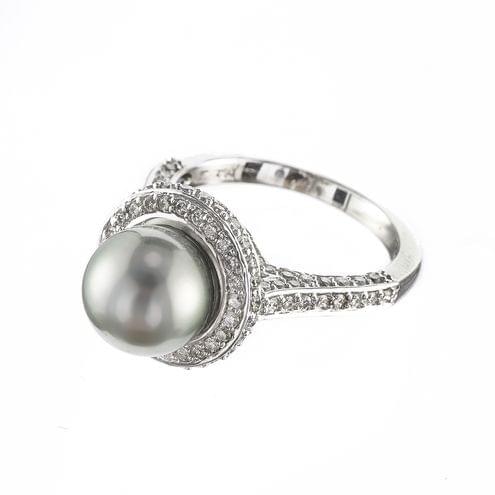 281. Bague sertie d'une perle de Tahiti (8 mm) entourée et épaulée de diamants (env. 0.9 ct)