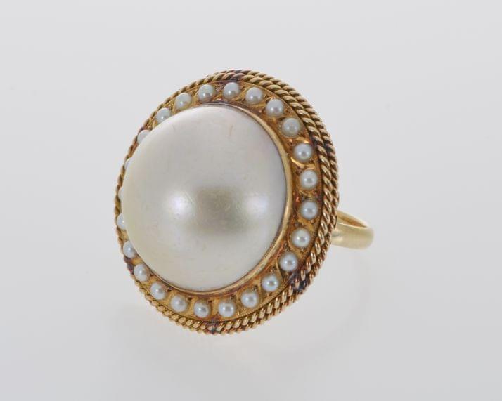 3126. Bague sertie d'une perle entourée de petites perles