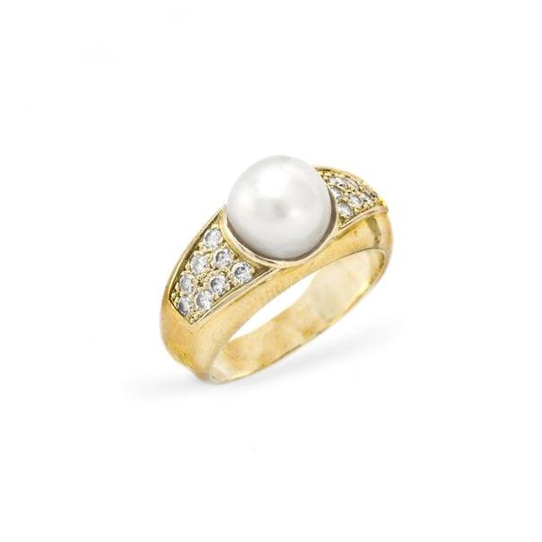 3200. Bague sertie d'une perle épaulée de diamants