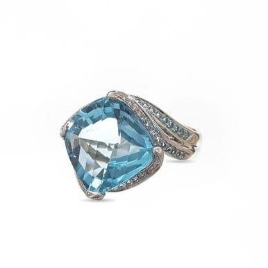 125. Bague sertie d'une topaze bleue dans un entourage de diamants et topazes bleues