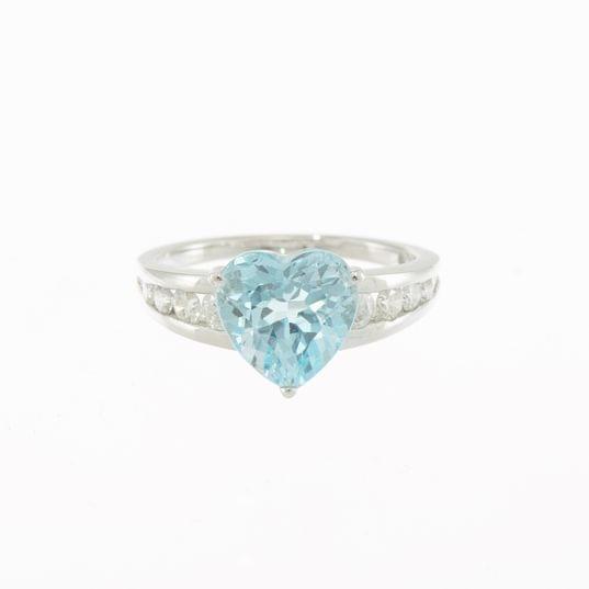 315. Bague sertie d'une topaze bleue taille cœur épaulée de diamants