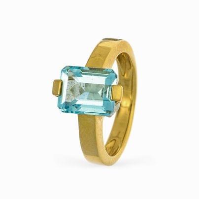 3061. Bague sertie d'une topaze bleue taille émeraude