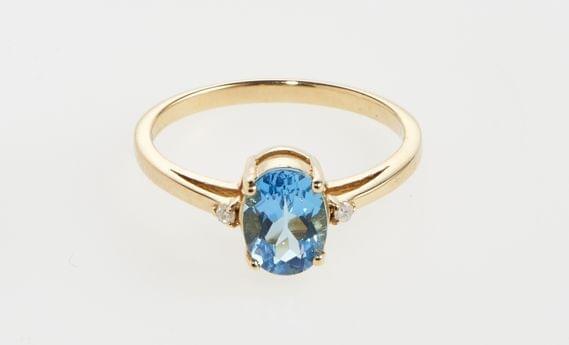 3251. Bague sertie d'une topaze bleue taille ovale (env. 1,4 ct) épaulée de diamants