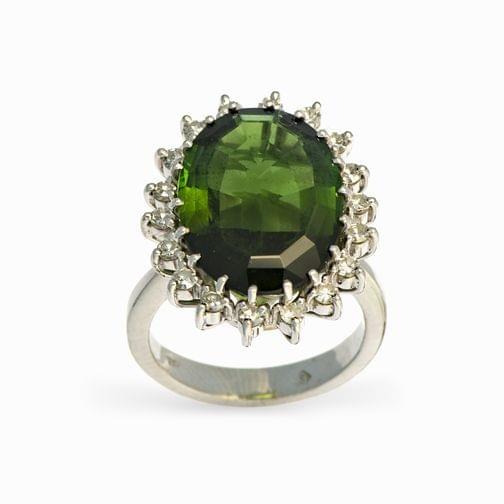 463. Bague sertie d'une tourmaline verte taille ovale (env 8 ct) entourée de diamants