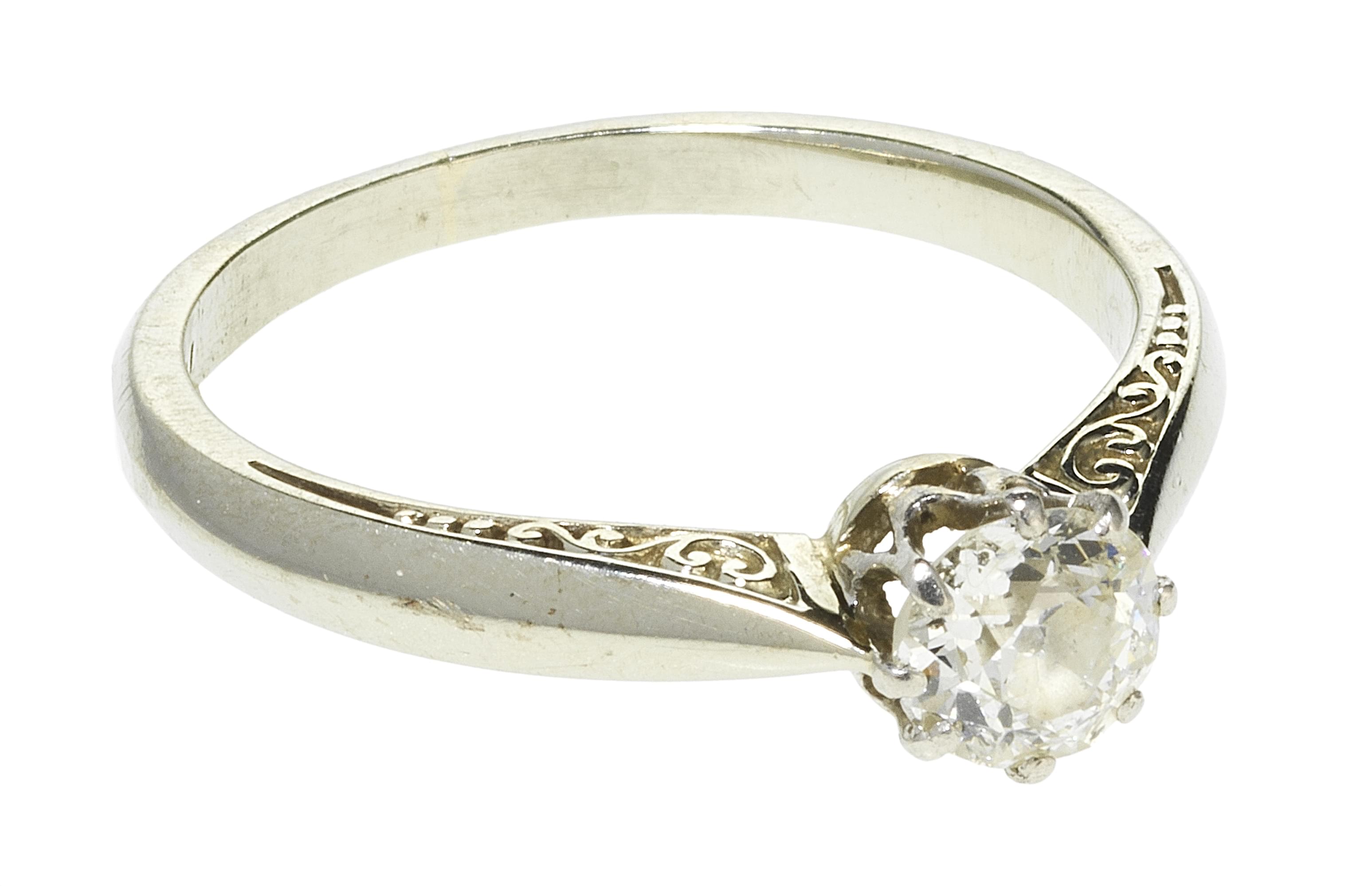 3069. Bague solitaire ciselée sertie d'un diamant taille ancienne (env. 0,45 ct)