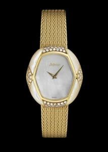 Cadran guilloché, aiguilles dorées, index diamants, or 750, D 28...