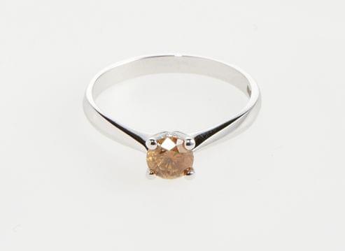 3267. Bague solitaire sertie d'un diamant cognac (env. 0,4 ct)