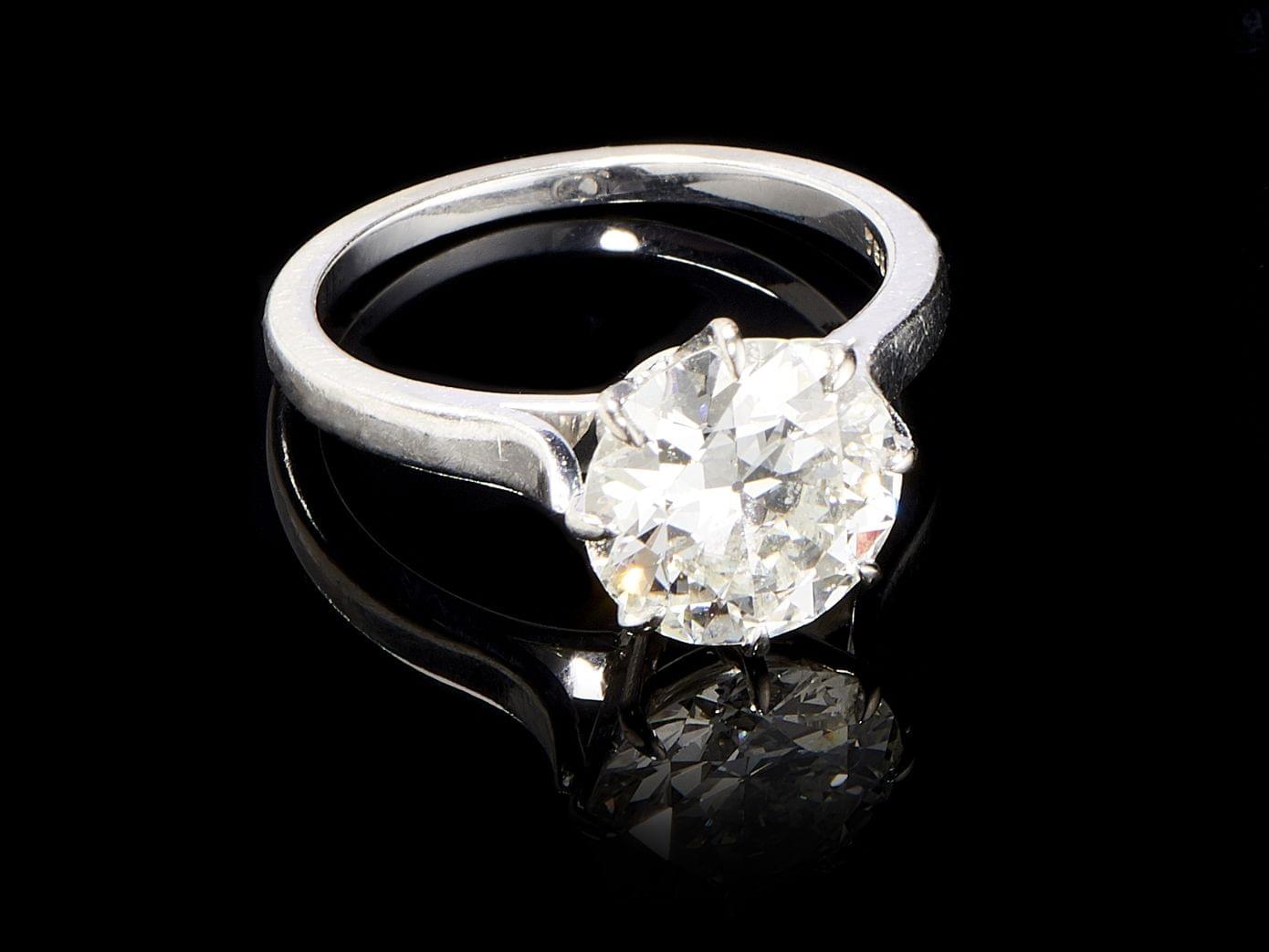 144. Bague solitaire sertie d'un diamant demi-taille (env. 2,5 ct)