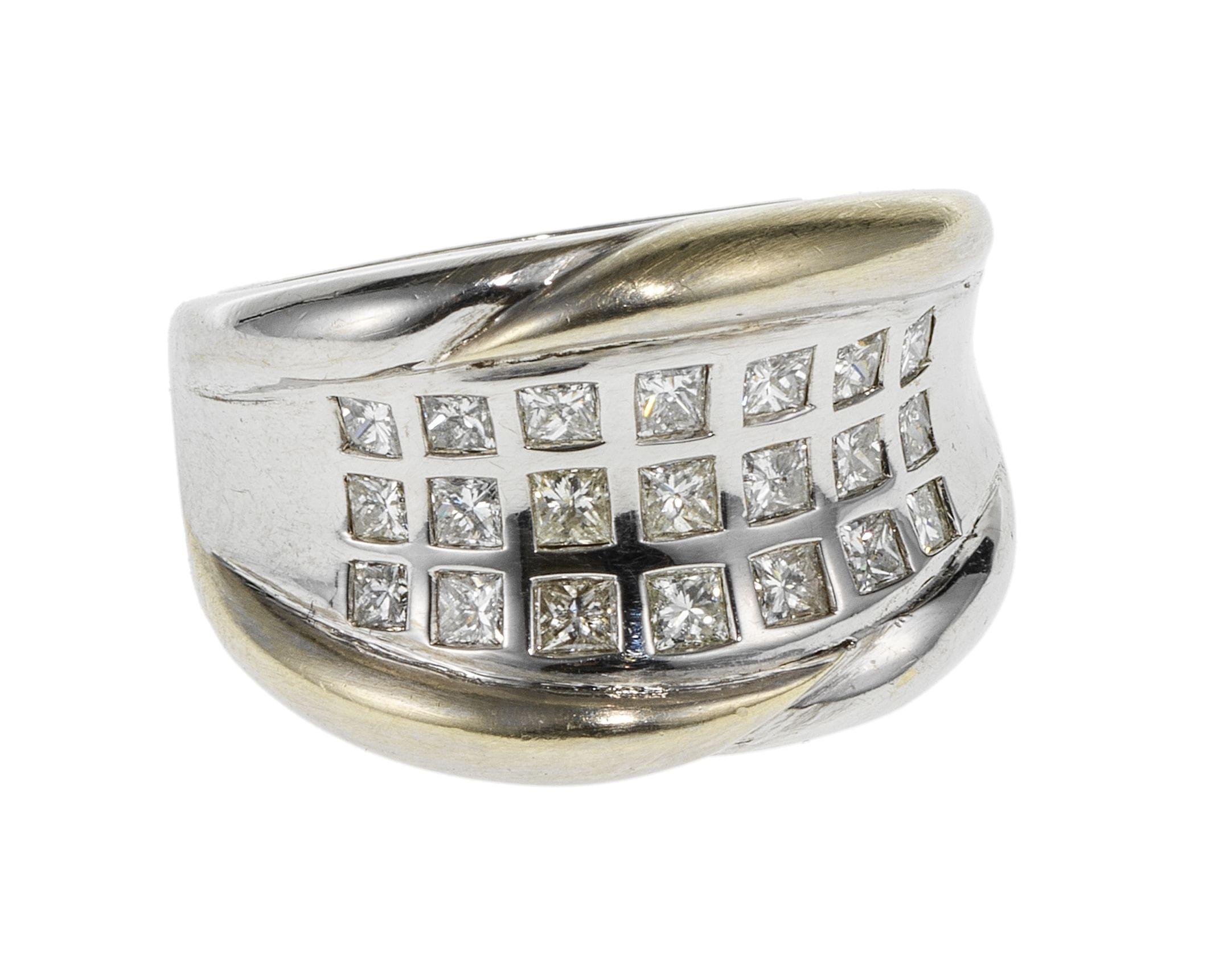 172. Montre-bracelet rectangle à quartz sertie de diamants, mouvement...