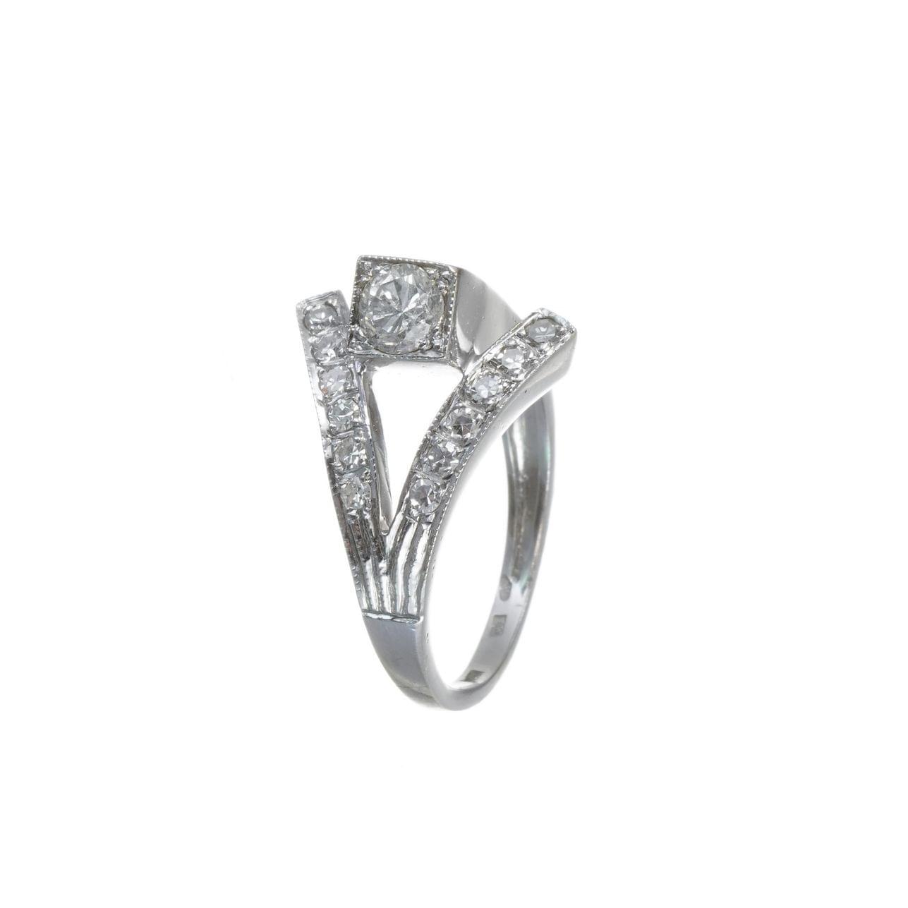 3375. Bague stylisée sertie d'un diamant rehaussé de deux lignes de diamants (total env. 0,5 ct)