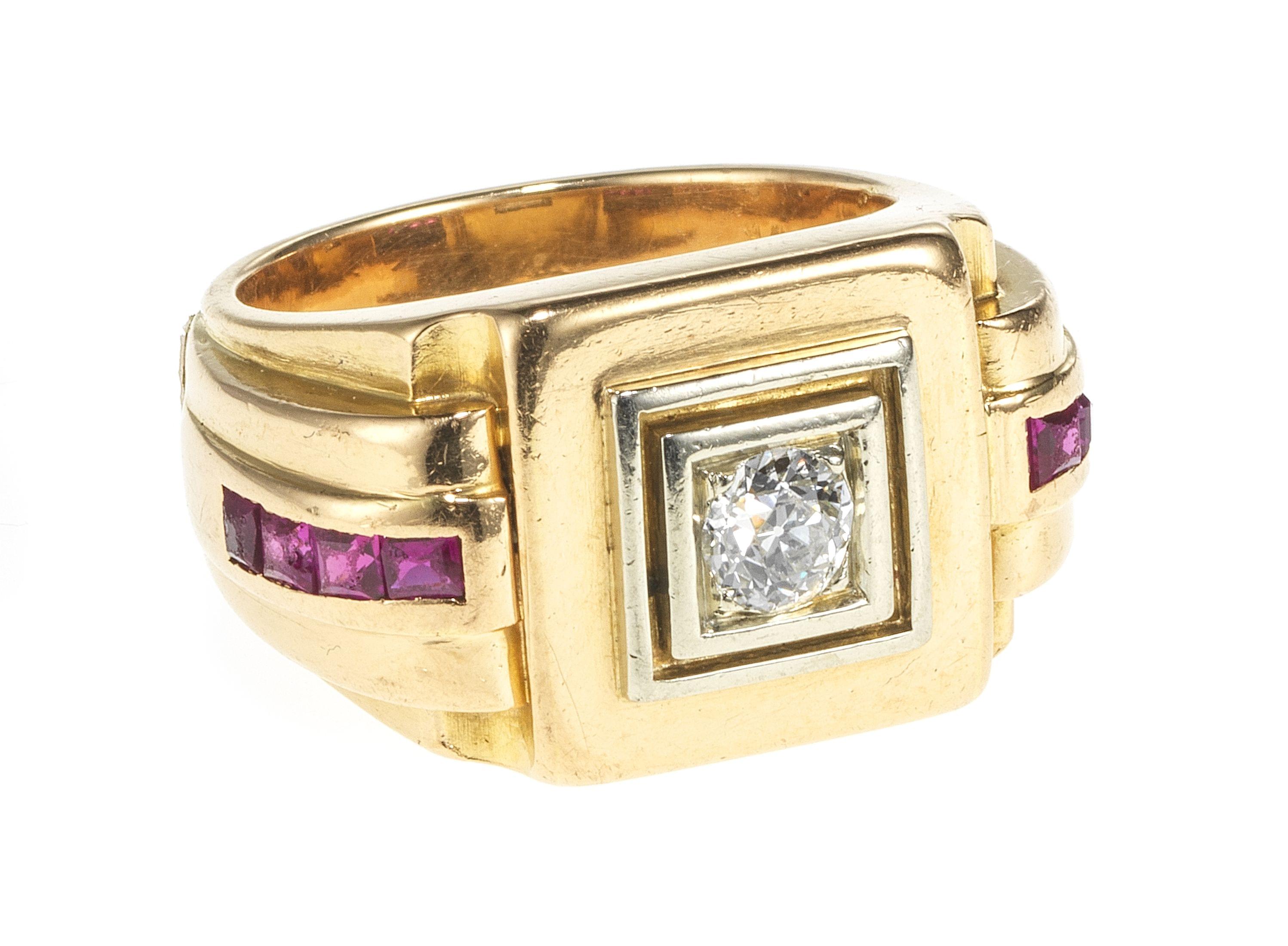 Centrée d'un diamant taille ancienne en serti clos (env. 0,8 ct)...