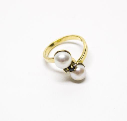 3164. Bague toi et moi sertie de deux perles, d'un saphir et de deux diamants taille brillants