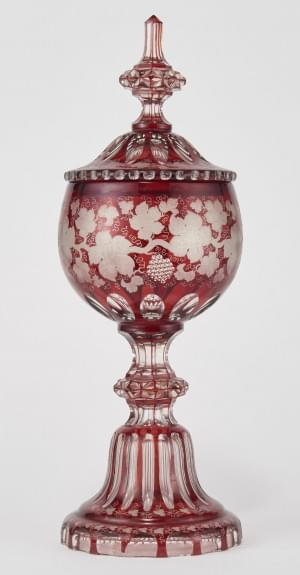 846. Grande coupe couverte à décor de pampres de vigne sur fond rubis