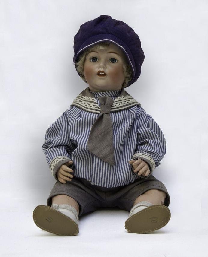 Tête en porcelaine, bras et jambes en carton peint, Allemagne, vers 1900, H 60 cm