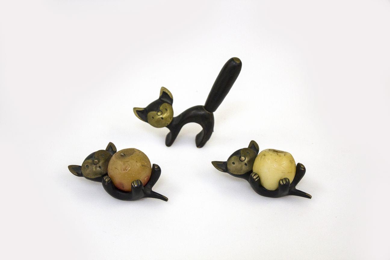 Trois chats dont deux bougeoirs et un tire-bouchon, L de 9 à 10 cm