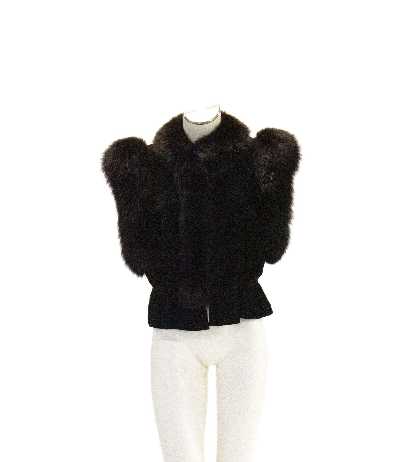 L'une en daim brun bordé de fourrure de vison, intérieur en soie brune, fermeture à crochets, l'autre en daim noir bordé de fourrure de vison, intérieur en tissu noir, fermeture à boutons