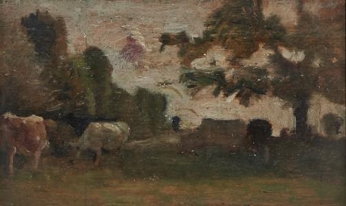 Deux études de paysages, paire d'huiles sur panneaux, 12x20 cm
